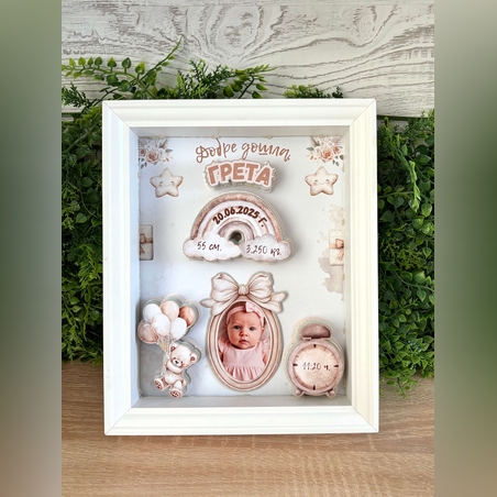 Открийте уникални рамки визитки за новородено, създадени с внимание към детайла! Идеални за подарък, спомен или украса, нашите стилни и елегантни рамки подчертават най-ценните моменти на вашето бебе. Изберете персонализирани дизайни, включващи име, дата на раждане, тегло и други важни детайли. Поръчайте сега от hm-ivona.com и запазете тези специални моменти завинаги! 🚼💖